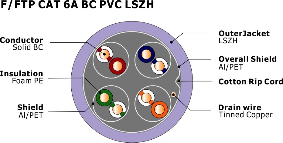 | Αριθμός αγωγών: | 4 ζεύγη | Τύπος: | F/FTP cat6a |