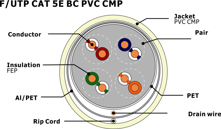 F/UTP CAT 5e BC CMP Σκληρό 0,50 mm αγωγό χαλκού εσωτερικό καλώδιο δικτύου Cat5e UL/ETL Πιστοποιημένο NO 7112115